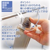 <ご使用方法>ボトルをぶら下げたまま片手でポンピングすることができます。