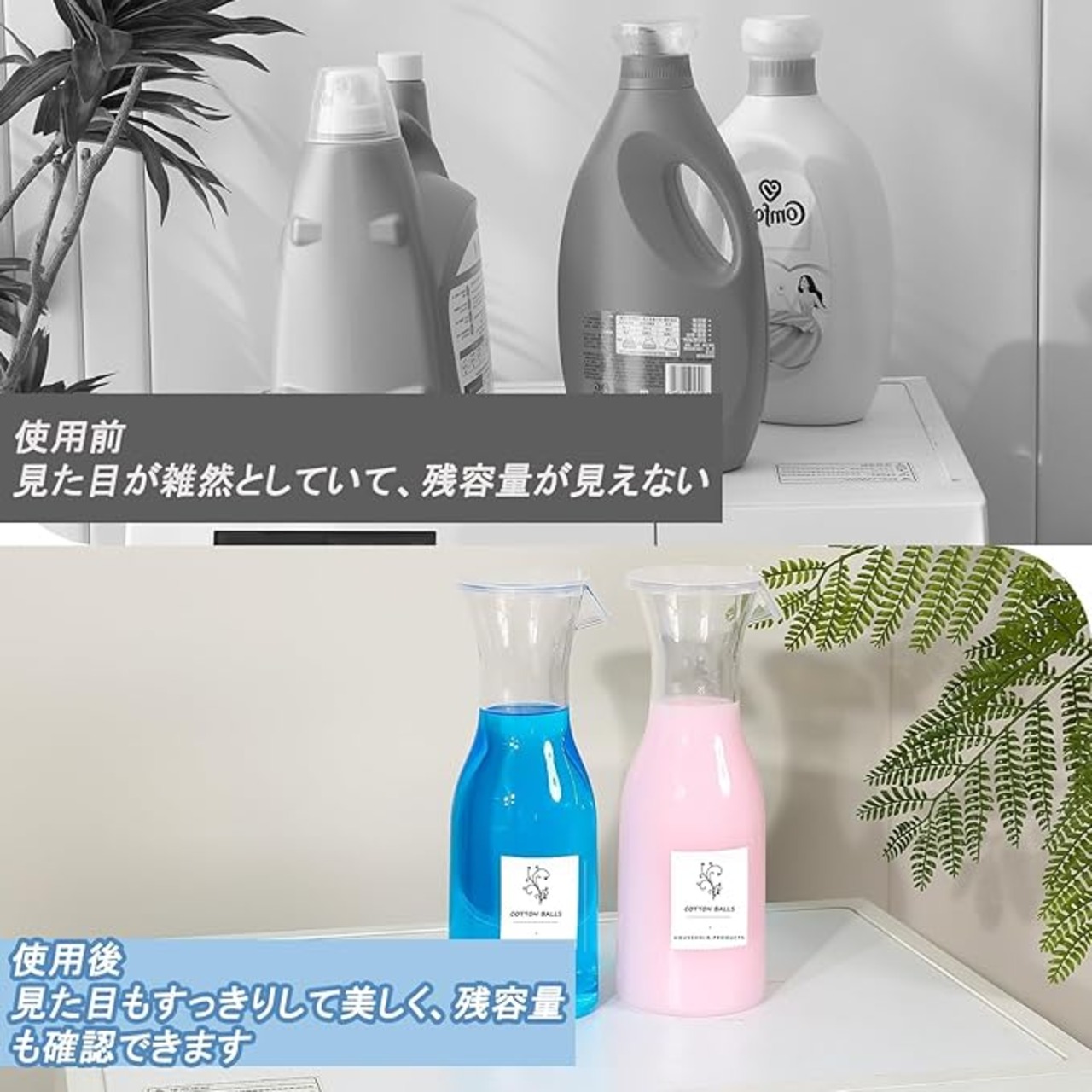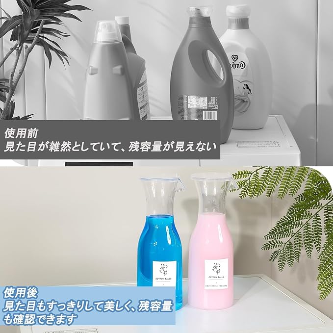 【大容量】洗剤ボトルは多くの洗濯剤を収納することができます。家庭、キッチン、バスルーム、ベランダ、庭、病院、学生寮、賃貸物件など、さまざまな場所でご利用いただけます。清潔で整頓されたスペースを提供します。