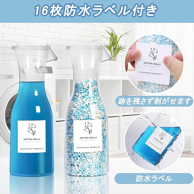 【16個防水ラベル付き】詰め替え 洗剤ボトルは16個防水ラベル付きで、液体名を記入できて、識別しやすいです。それに、このラベルは剥がやすくて、跡を留がさないです。