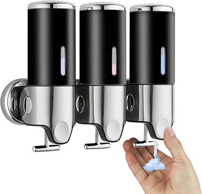 3連式大容量デザインで使い分け自由、衛生的で便利な詰め替えシステム。500ml 3つの独立チャンバーを備えた多機能ディスペンサー。シャンプー、コンディショナー、ボディソープなど、用途に合わせて液体を使い分け可能。水回りの整理整頓に最適で、詰め替え頻度を大幅に削減。衛生的なワンタッチ操作で、毎日のバスタイムがより快適に。