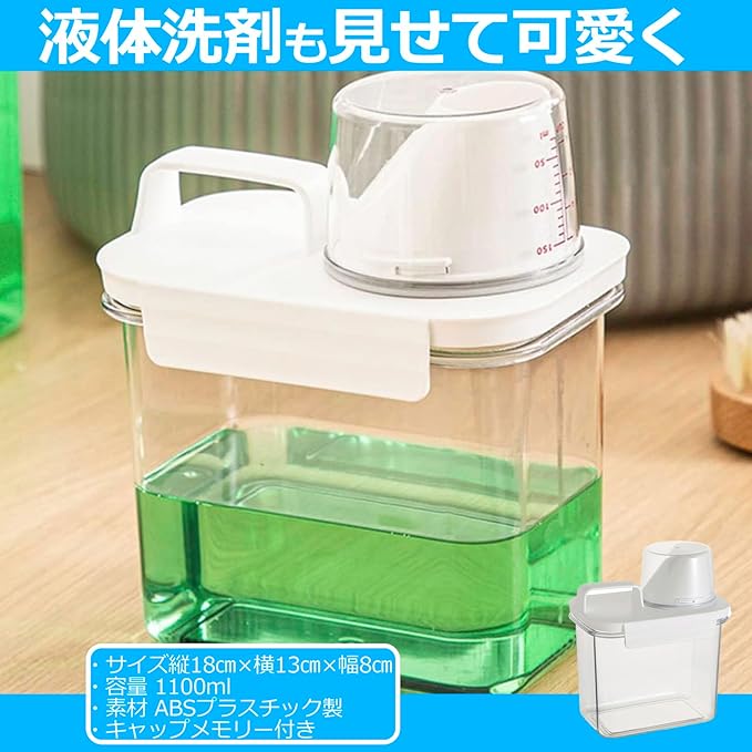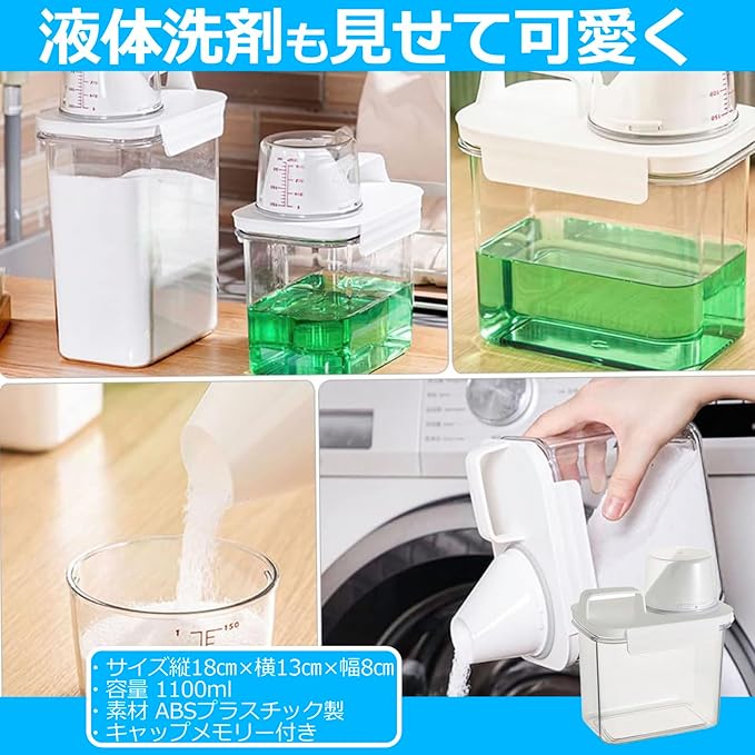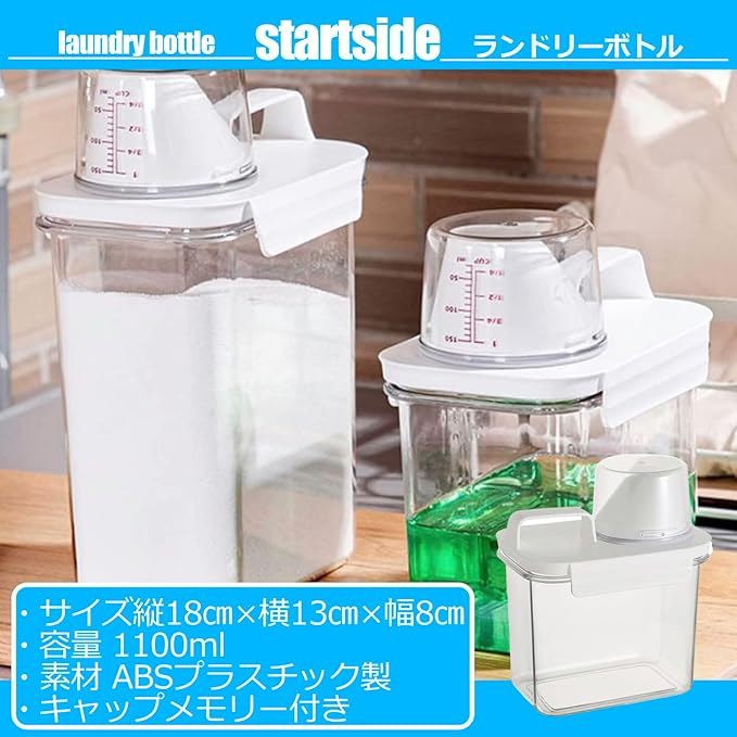 スタートサイド 詰め替え用 ランドリーボトル 洗濯ビーズ 詰め替え 収納ケース メモリ付き 蓋つきプラスチック収納 収納ボトル (透明 1100ml)