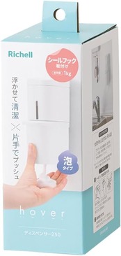 リッチェル(Richell) ホバー キッチン泡ディスペンサー 250 ホワイト 1個 110085 貼れる はがせる 下から出る キッチン 浮かせる 収納 おしゃれ 片手 詰め替え プラスチック サイズ/6.6 10.4 16.6H(cm) 容量/250mL 材質/ポリプロピレン他 耐荷重/1kg