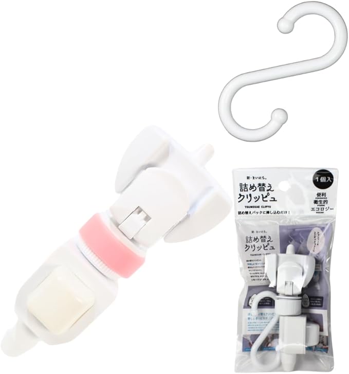 詰め替えクリッピュ 1個セット ピンク シャンプー リンス ボディソープ 化粧水 クレンジングオイル 詰替え 対応 ぶら下げ 吊り下げ 浮かせる ディスペンサー お風呂 便利グッズ