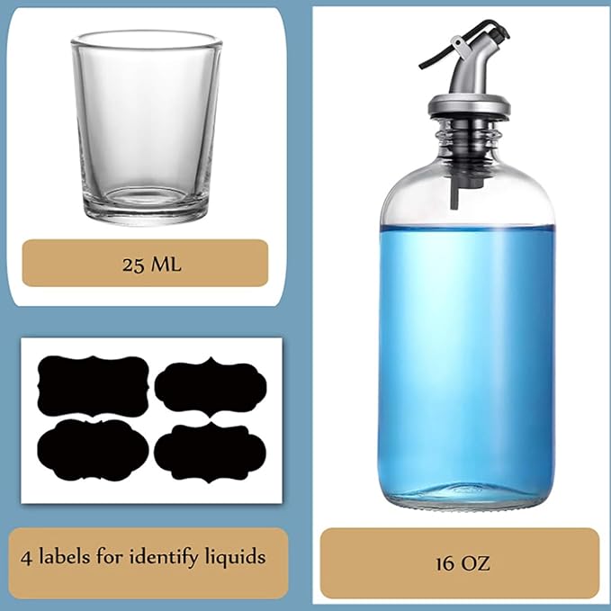 500mlボトル2本+注ぎ口2本+2個+じょうご1個+黒板シール4枚。品質の素材:ディスペンサーボトルはガラス製で、プラスチック製の注ぎ口は頑丈で密閉されており、錆びることはありません。