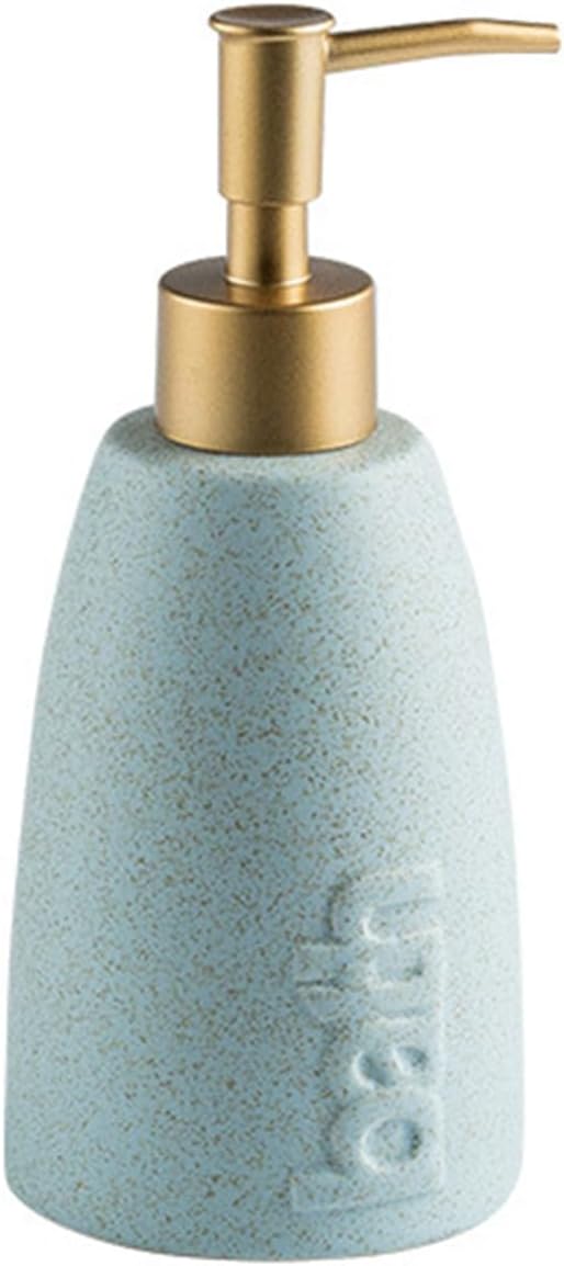 [Queen-b] ソープディスペンサー 砂 おしゃれ 詰め替え 容器 かわいい 手動 液体 石鹸 シャンプー リンス ディスペンサー ボトル 陶器 バスルーム 浴室 (ブルー)
