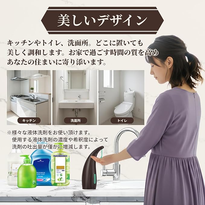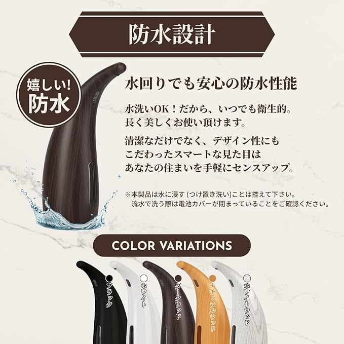 あなたの住まいに溶け込む、触れずに叶う衛生習慣。 非接触で衛生的。美しいデザインのセンサー式オートディスペンサー。 防水機能付きで水回りでも安心。汚れれば丸洗いして頂けます。