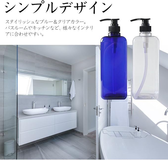 機能性とデザイン性を兼ね備える:本体はPET素材を採用、シンプルでスタイリッシュなデザインなので、どんなお風呂場の空間にも馴染みます。クリアーなので中身があとどれぐらい残っているか一目で分かるので、詰め替え時期をしっかり把握することができます。