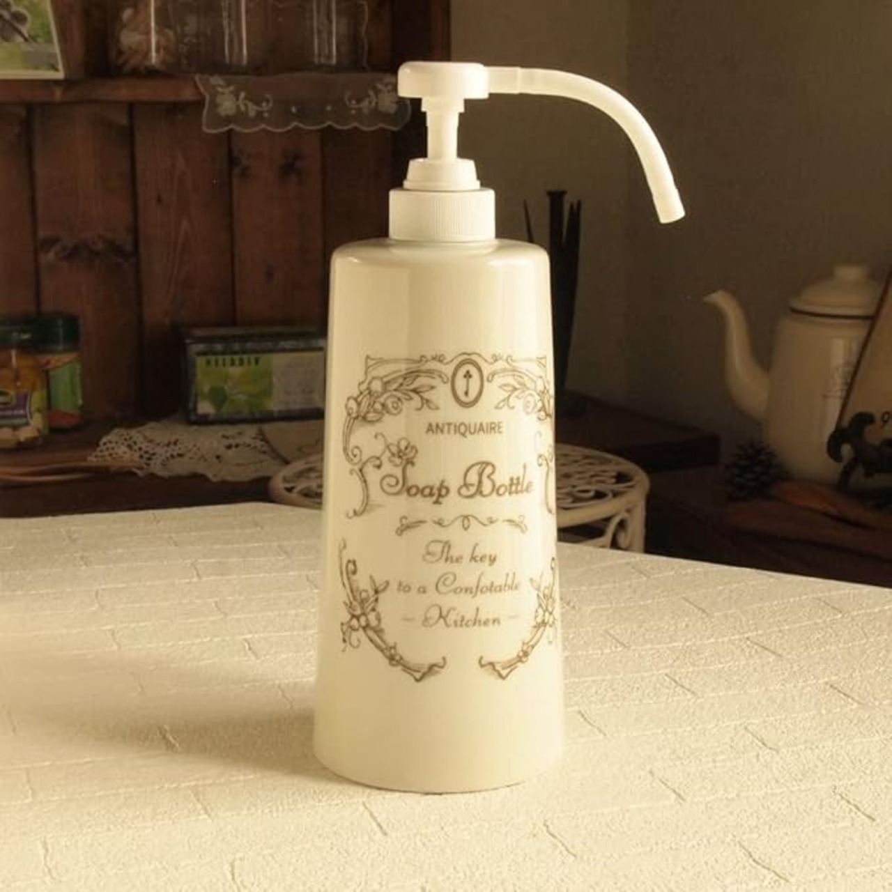 まるで海外のお家にお邪魔しているような、そんな憧れのシーンを演出するソープボトル。 当店大人気のかわいい雑貨です。 ソープを詰め替えてゴミを減らすエコロジー! 液体石鹸だけじゃなく、シャンプーやリンスを入れてお風呂に、化粧水や乳液を入れて化粧台にと、用途はいろいろ! どこでも絵になるフレンチカントリー風雑貨です。 日本製 サイズ: 9cm(最大径) 高さ24.5cm 容量:600ml 材質: 磁器 カラー: ベージュ