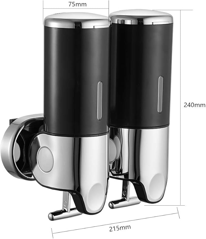 tropical ソープディスペンサー 壁掛け式 シャンプー ボディーソープ 浴室 バスルーム シャワーディスペンサー シルバー 1000ml 2連 (黒)