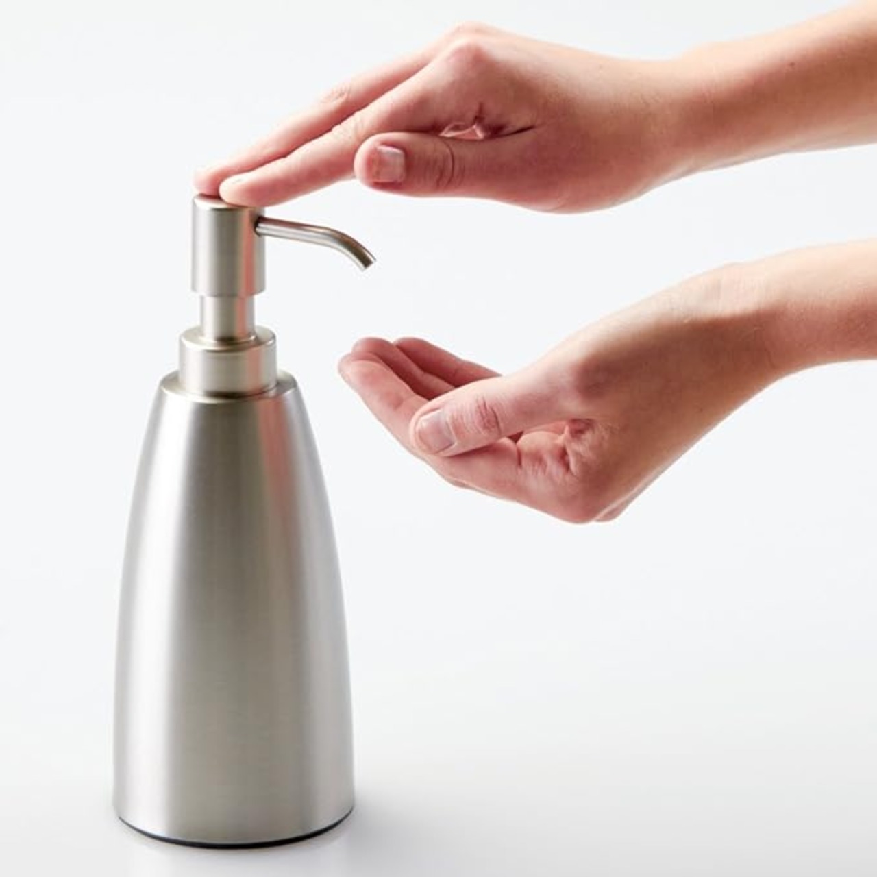 InteDesign Forma ソープボトルはモダンでスタイリッシュなデザイン。キッチンや浴室の水周りで実用的なアイテムです。ボトルはステンレス、ポンプはプラスチックでできている防錆製のソープボトルです。