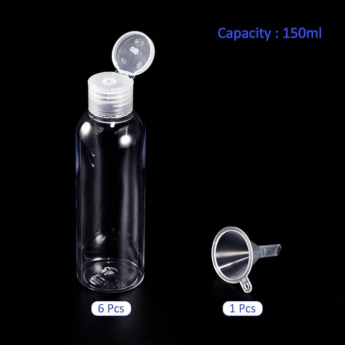 M METERXITY 6個入りのプラスチック製空き絞りボトル - シャンプー用クリアトラベルボトルコンテナ(150ml 43x115mm)と漏斗 出張用