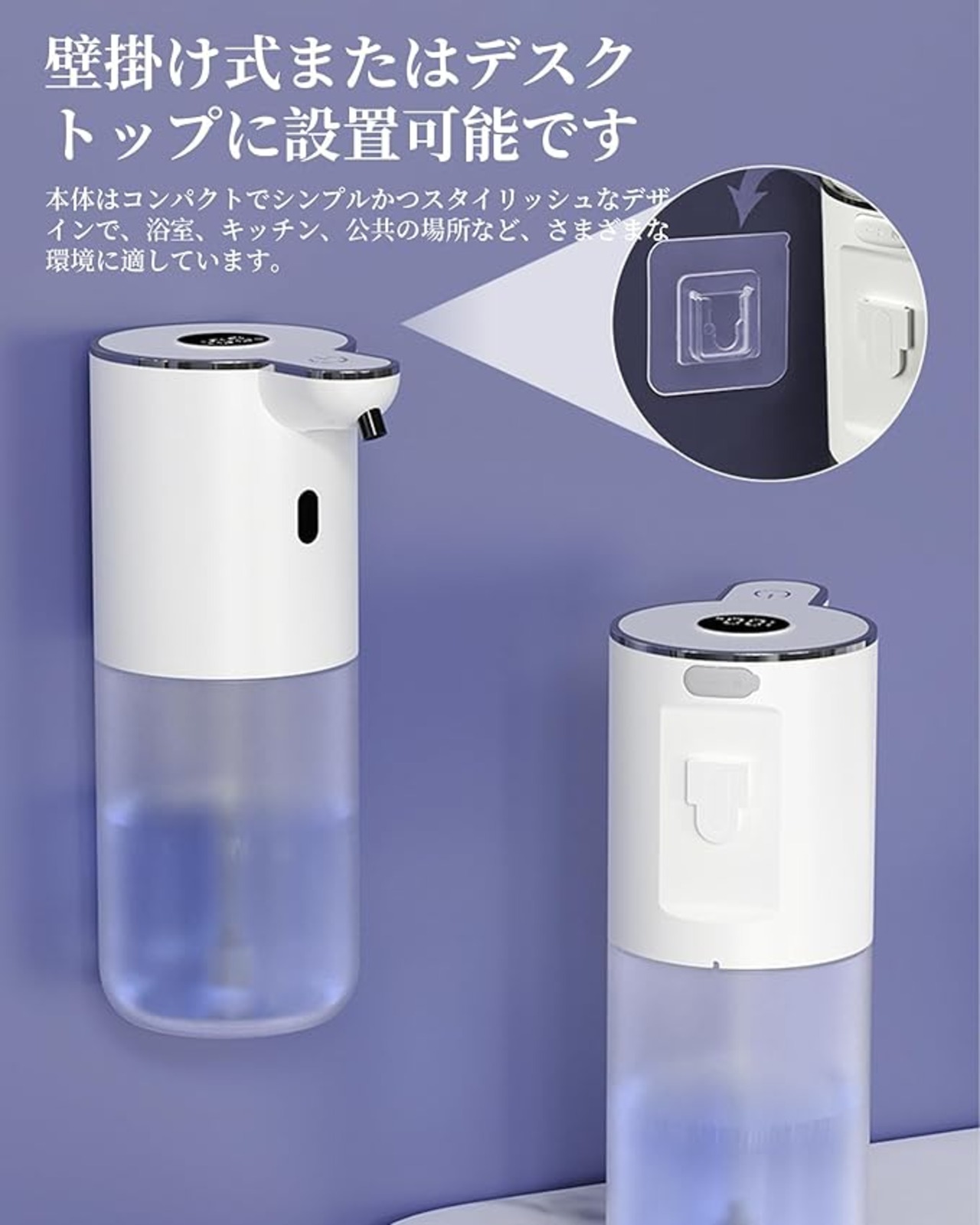 ソープディスペンサー 手洗い石けん 自動 非接触 衛生的 吐出量6レベル調整 細かい泡 オートディスペンサー 400ml 壁掛け ディスペンサー 半透明ボトル 充電式 節水設計 キッチン 洗面所 オフィスに最適