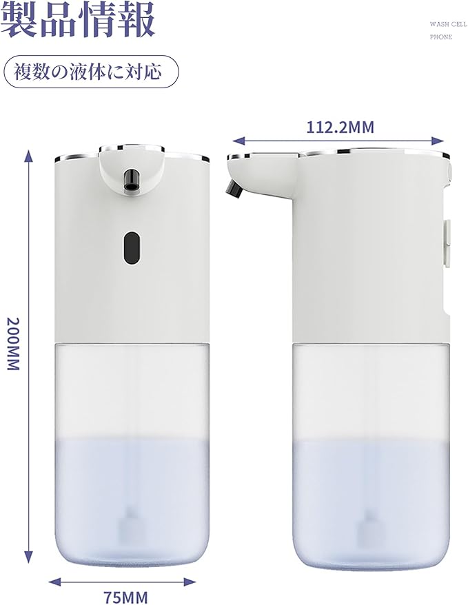 「400ml 透明タンク、一見で分かる」自動ソープディスペンサーは 400ml の透明タンクを採用しているため、残量がひと目で確認できます。