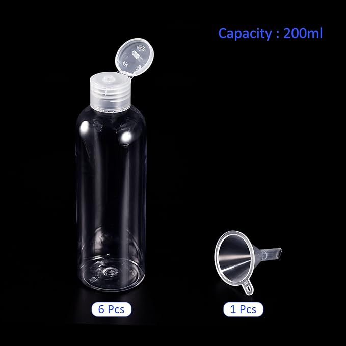 M METERXITY 6個入りのプラスチック製空き絞りボトル - シャンプー用クリアトラベルボトルコンテナ(200ml 48 x130mm)と漏斗 出張用