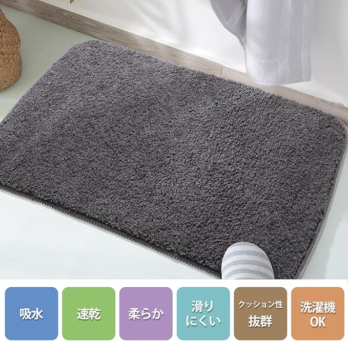 Gemarwel バスマット 速乾 吸水 お風呂マット 洗える 滑り止め 约40x60cm マイクロファイバー マット 足拭き 浴室 おしゃれ 洗面所 抗菌 防臭 ダークグレー