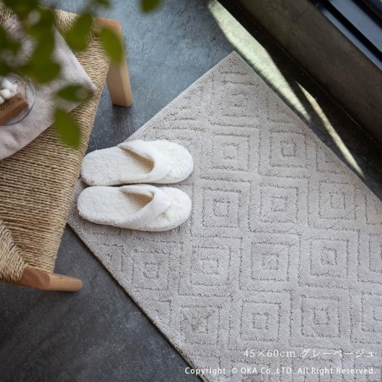 オカ(OKA) 乾度良好ピュール バスマット 約45cm 60cm グレーベージュ (お風呂マット 大判 浴室 おしゃれ 洗面所 足ふきマット 抗菌 防臭 吸水 速乾 洗える)