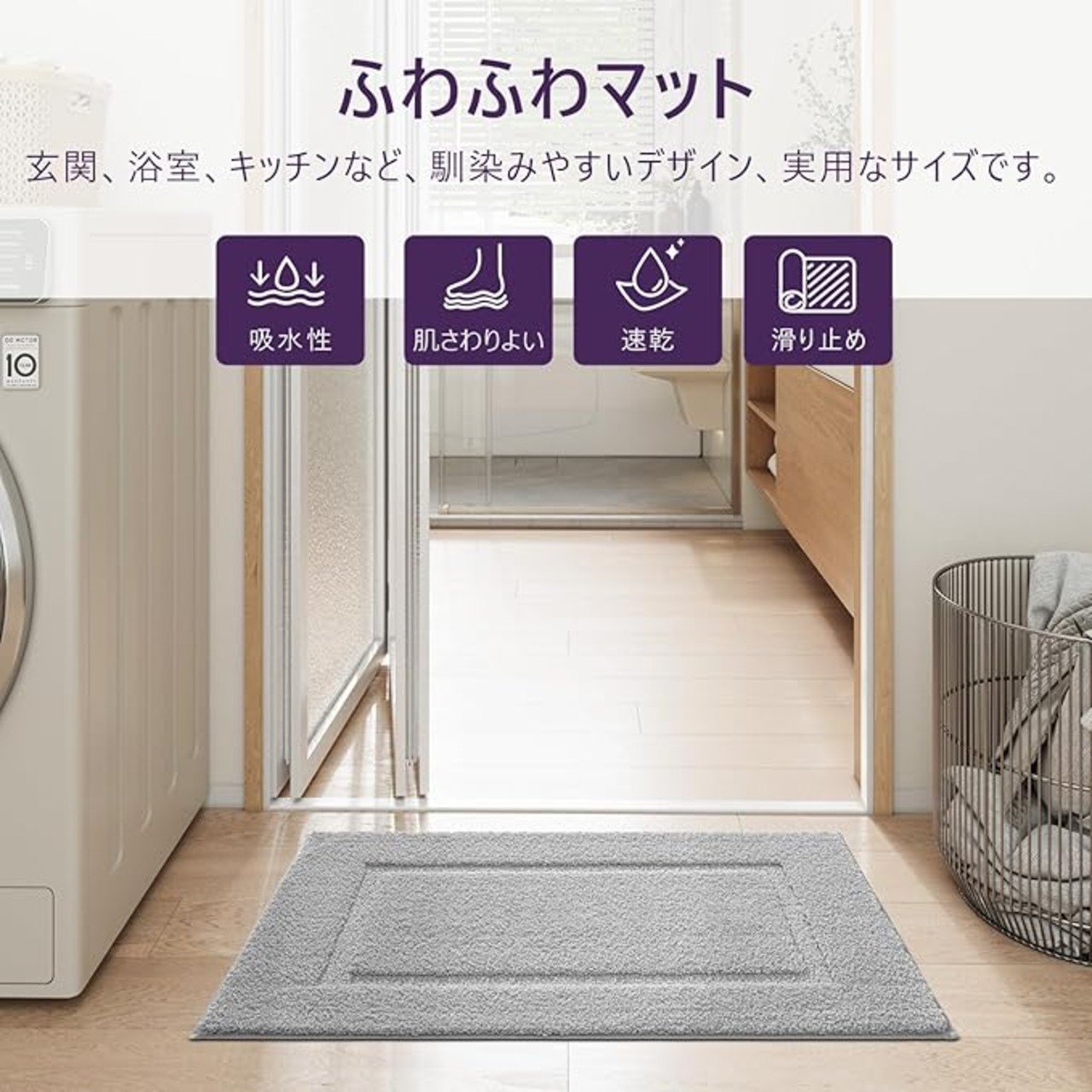 【ふわふわで気持ちよい】ソフトなマイクロファイバー素材で加工したこのバスマットは、ふかふかで、気持ちいい肌さわりを感じします。マットに立ち上がると、ソフトな毛が足裏を包んで、爽やかで、踏み心地がいいです。そして、冷たくなくて、床の寒さを感じしません。一日中の疲れをすば早く解散します。