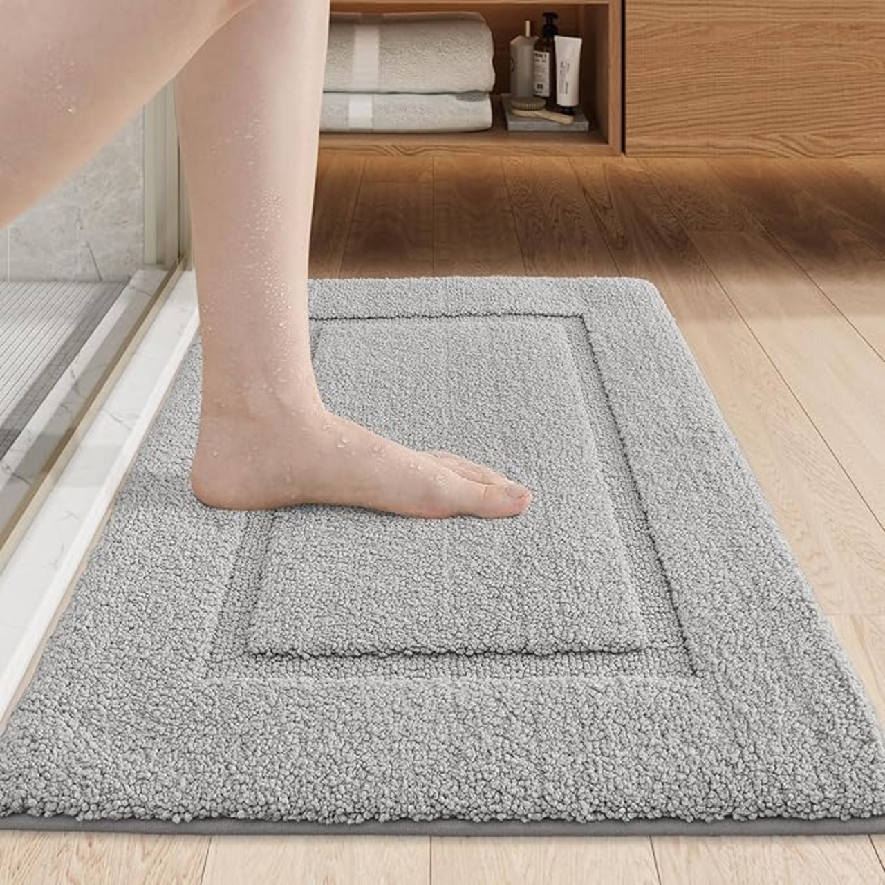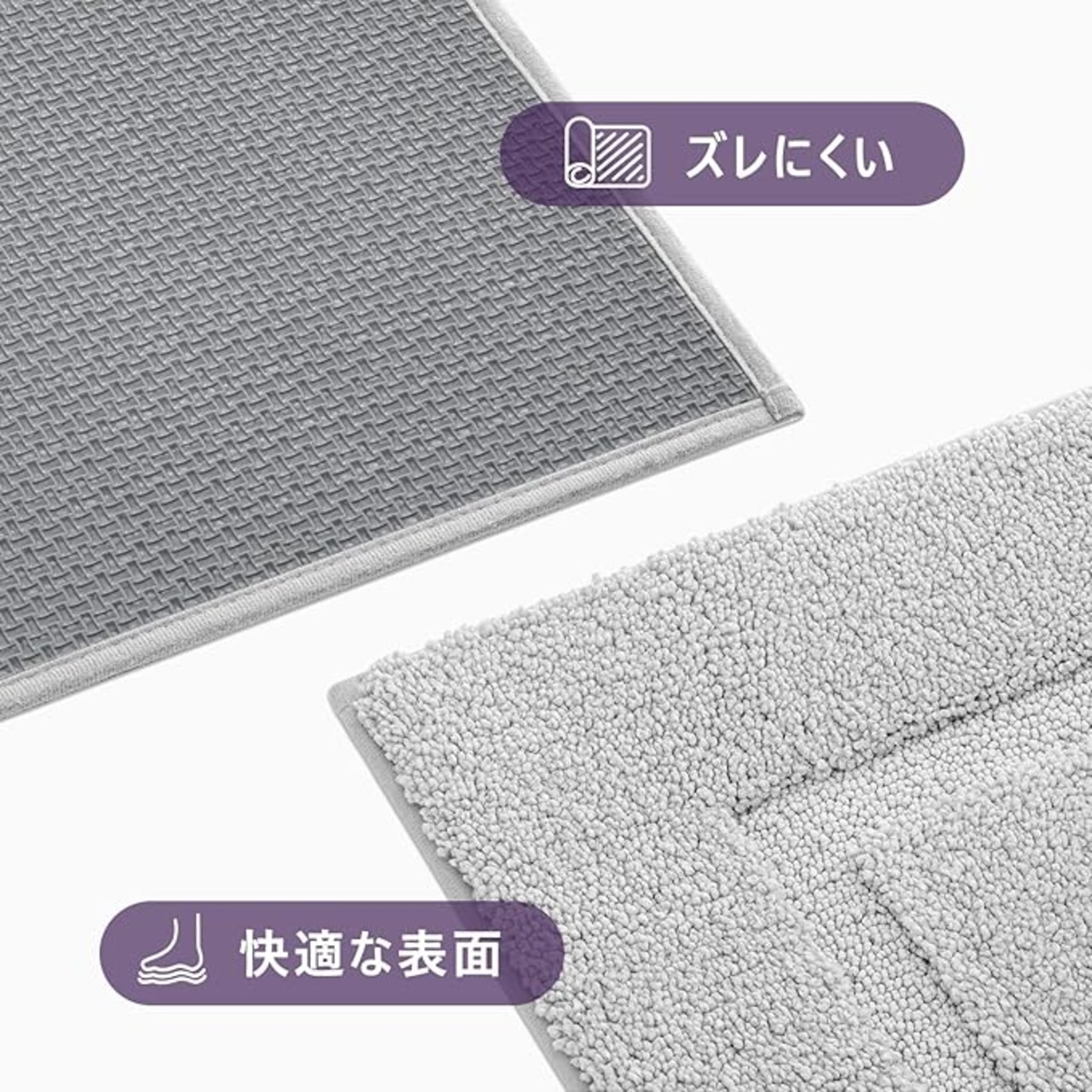 DEXI バスマット 速乾 お風呂マット 高吸水力 足拭きマット 滑り止め 洗える マイクロファイバー 浴室 洗面所 バスルーム 40 60cm ライトグレー