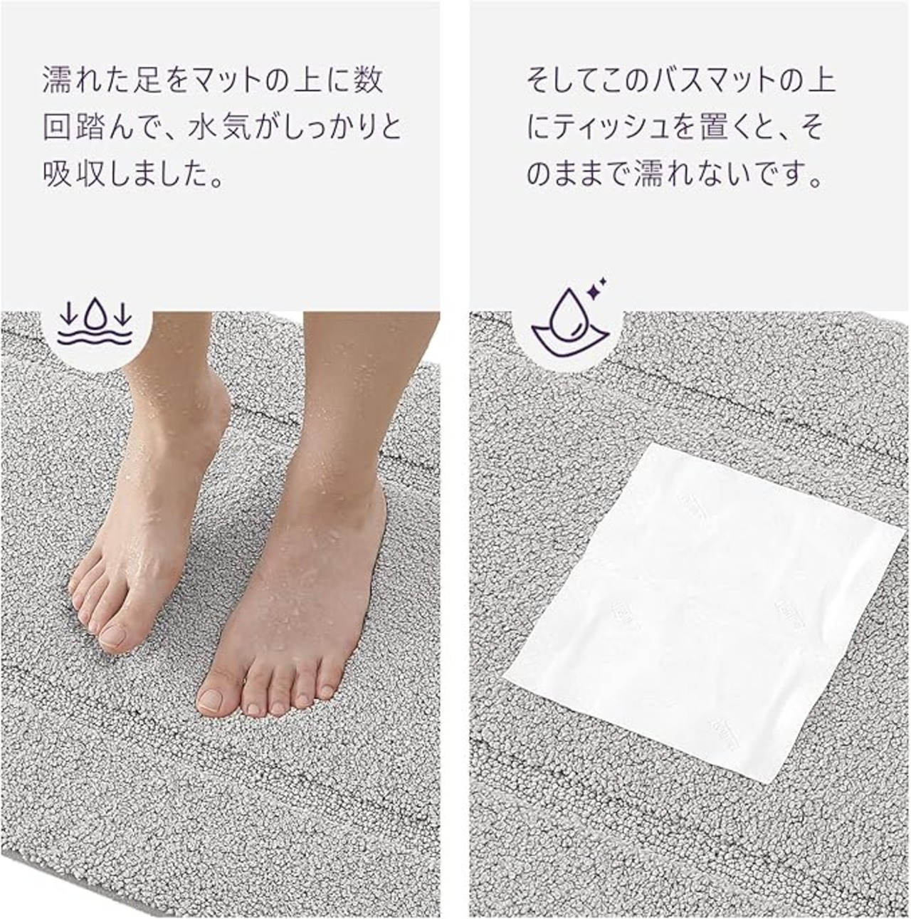 【優れた吸水性】濃密な繊維が足を包み込むと、すぐに水分を吸収します。びしょびしょな足をお風呂マットに包み込むと、すぐ水分を吸収します。吸水力がup、しかも速乾性も優れた。足も、浴室のフロアも、よく乾く状態を保ちます。