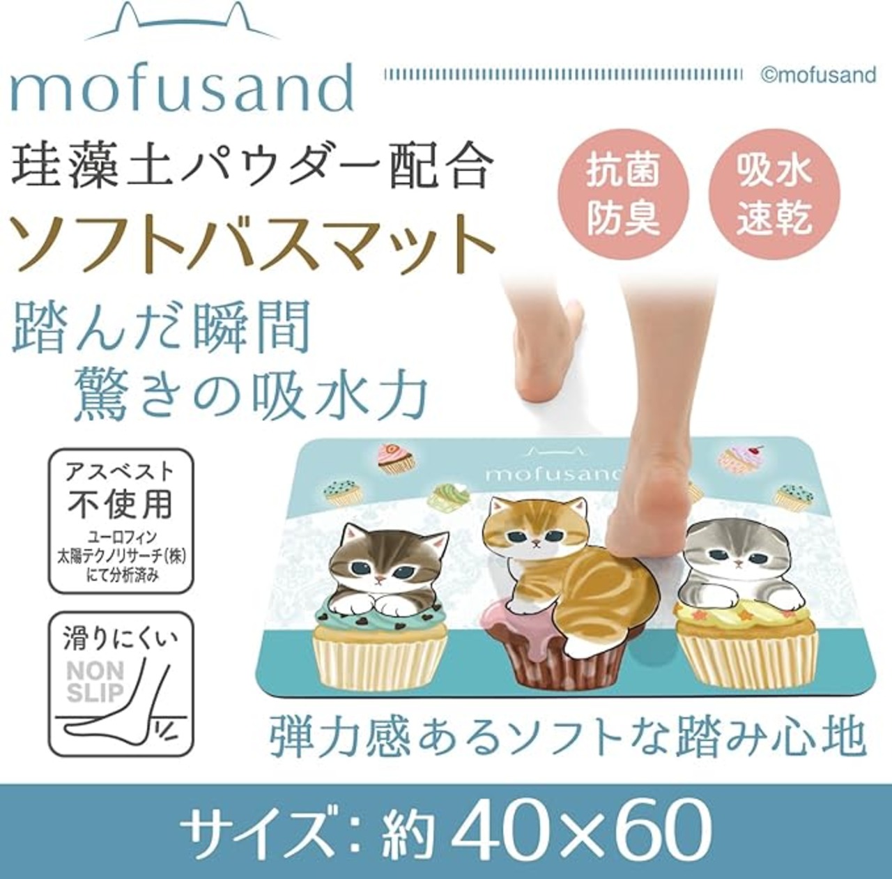 ヨコズナクリエーション モフサンド バスマット (珪藻土パウダー入 ソフトバスマット カップケーキにゃん, M)