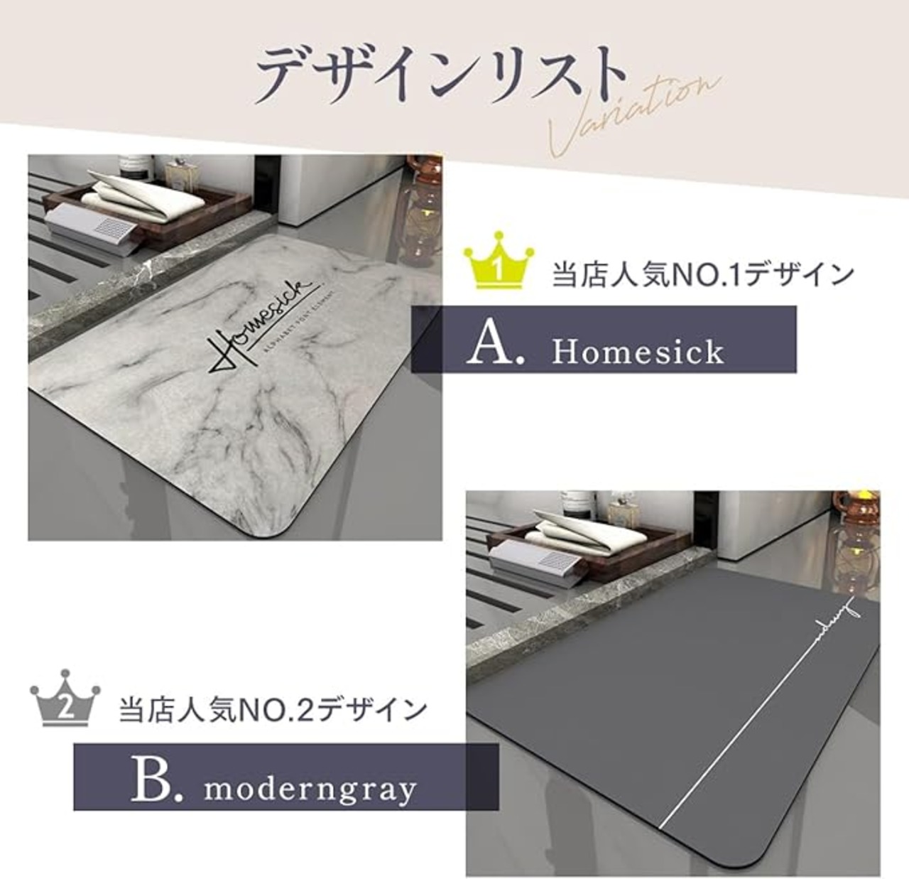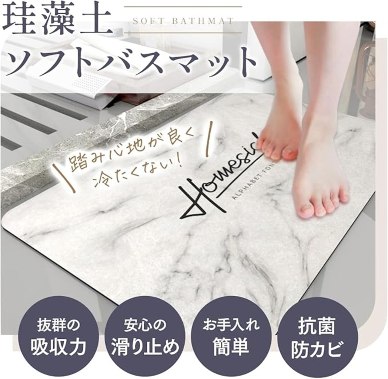 珪藻土 バスマット ソフト 大きめ 小さめ 洗える マット お風呂マット 速乾 足拭きマット 柔らか バスルーム 割れない 大判 珪藻土マット 吸水 厚手 浴室 洗面所 脱衣所 40cm 60cm (B.moderngray)