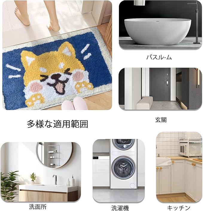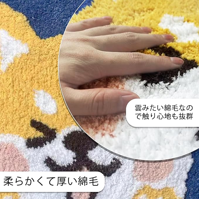 【シンプルなデザイン・多用途】かわいい動物のデザインが互いに引き立て合っており、ナチュラルな雰囲気を演出します。子供部屋に置けば、子供たちは喜び、大人の部屋に置いても、やわらかな雰囲気を作り出します。屋内の玄関マットとしてだけでなく、キッチン、バスルーム、トイレなどの家庭内の様々な場所でも幅広くお使いいただけるフロアマットです