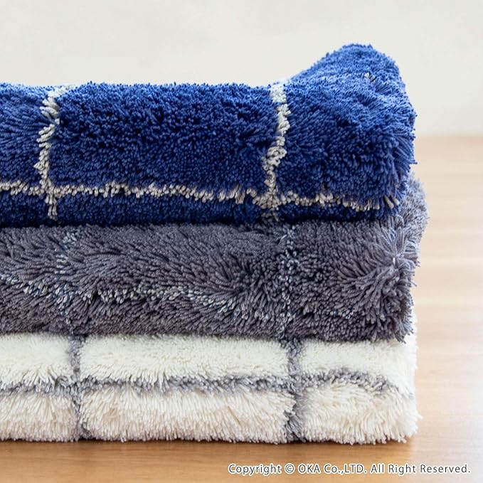ふかふか、シャリっとした足ざわりがお風呂上がりの足を包み込み毛足が倒れにくいほど毛が倒れにくくいつでも見た目が美しいマットを保つことができます。3カラー、2サイズと使用場所でお好みのマットをお選びください。