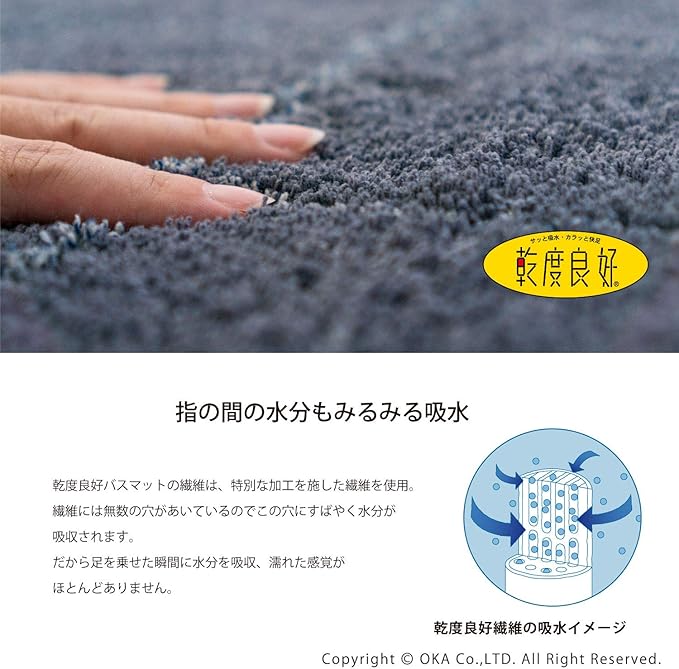 吸水速乾性も優れているので、次の人が使用しても濡れている感じがせず、快適なお風呂上がりが続きます。