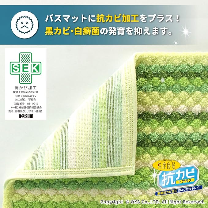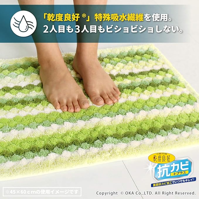 オカ バスマット 乾度良好 抗カビプラス 吸水 速乾 約45 60cm グリーン