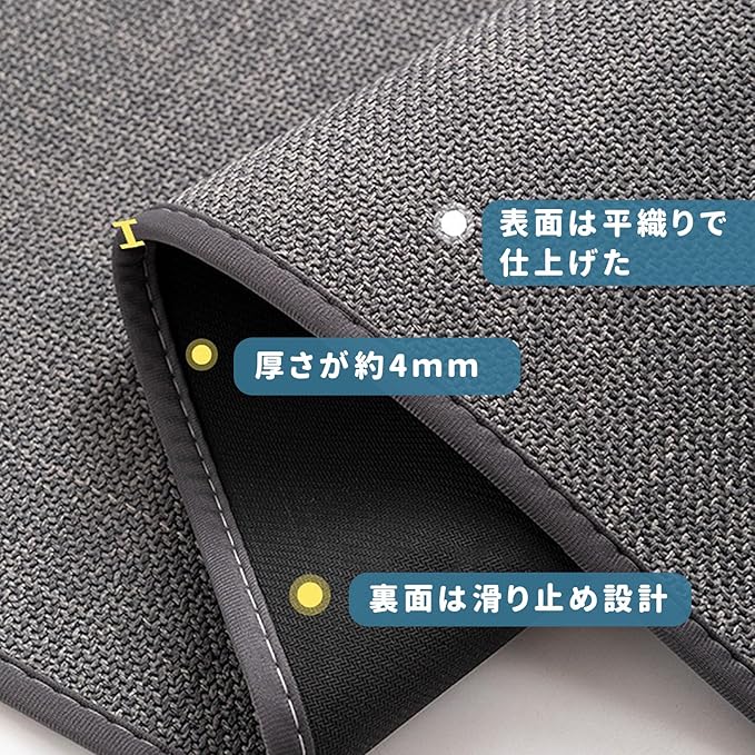 【良い踏み心地】毛足がなくさらりとした肌触りでしっかりと織り込まれていることにより長くお使いいただける敷き物です。冬にも冷たくない感じです。床の段差や歪みなどを気にせずどこでもお気軽にご使用いただけます。