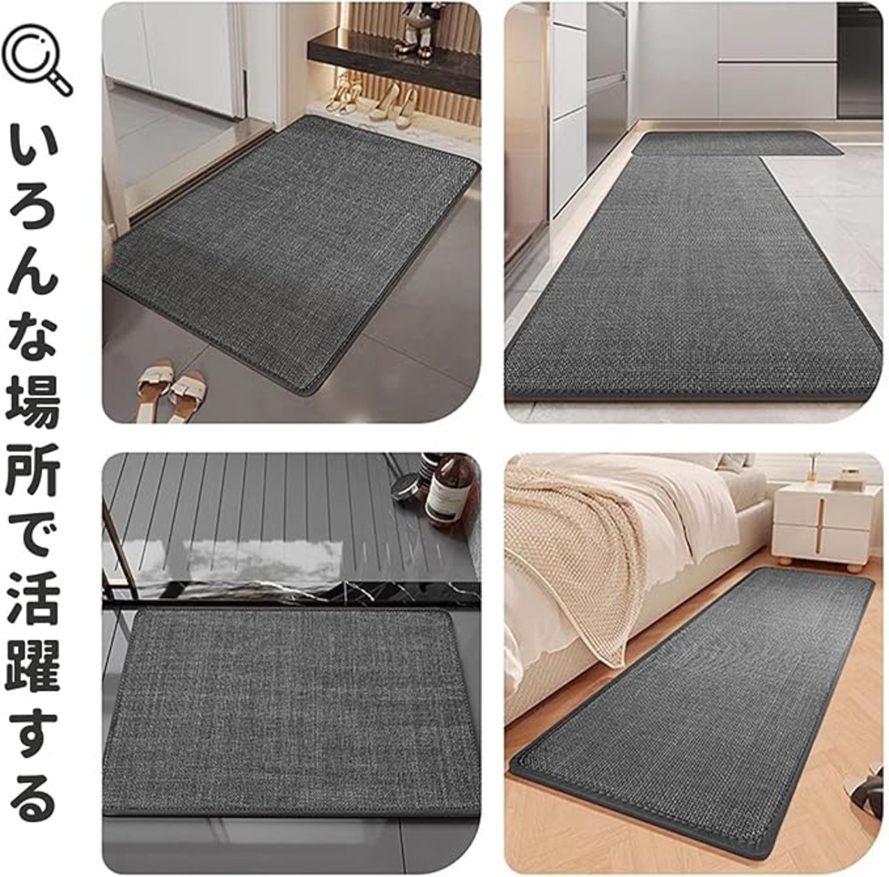 【様々な場所に適用】浴室、脱衣所、洗面所、キッチンや玄関などの場所で、足元の乾く、水分の吸収などに適用します。髪の毛を取り込まず、ホコリを溜めず、ペットのいるご家庭でも安心してご使用いただけます。