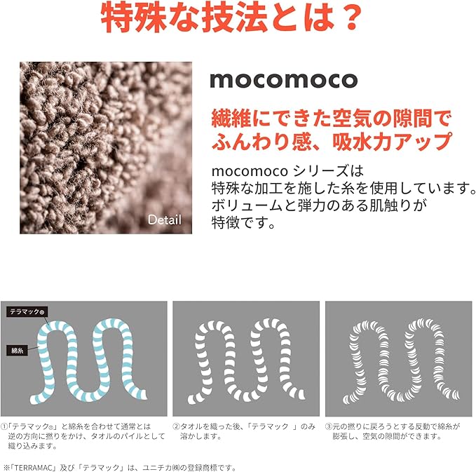 【記憶に残るもこもこな肌ざわり】 もこもこ仕様のOSTD(オーエスティーディー)バスマットは、もこっとした弾力。繊維の間にたっぷり空気を含ませる特殊製法により、バスマット本来の高い吸水力とふっくらとした肌ざわりを両立しました。