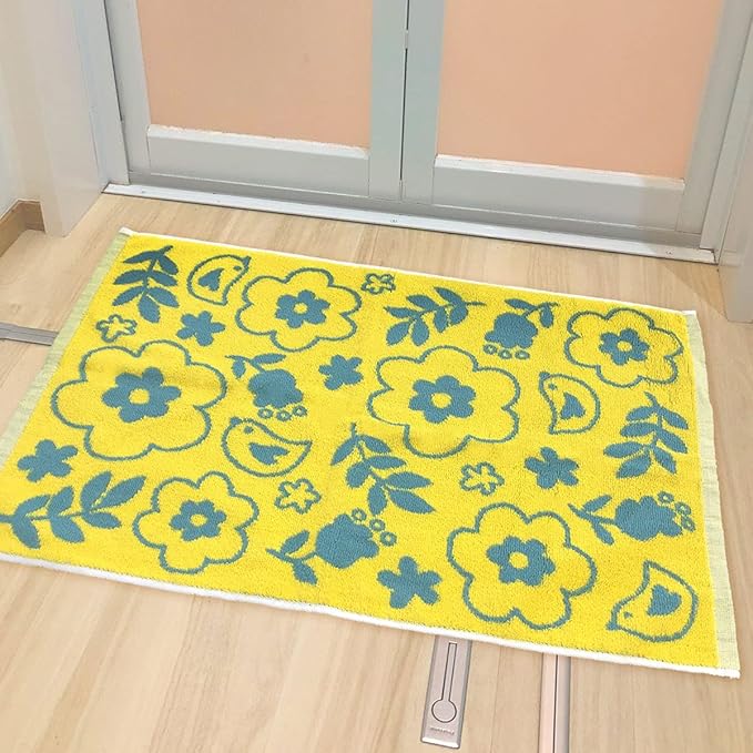 綿100%の、タオル地のバスマットです。ネコ柄、ドット柄、花&小鳥柄の3枚セットです。