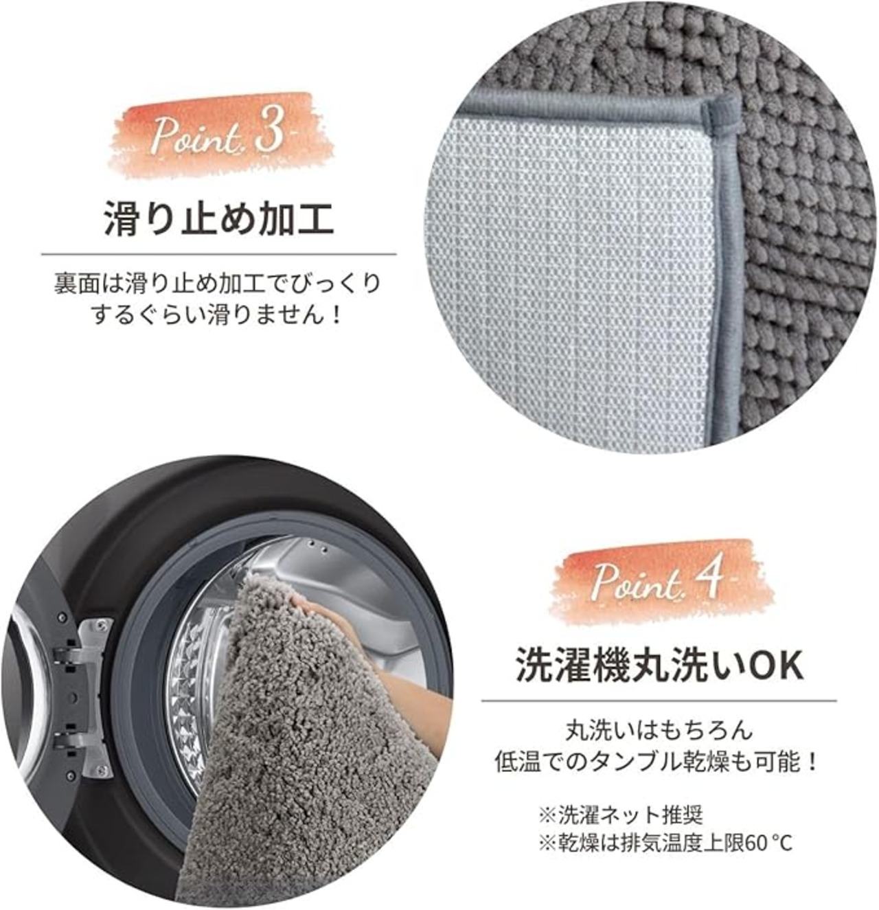【面倒な洗濯が簡単に】もちろん洗濯機を使用して丸洗い可能!いつも簡単に清潔に保てます。※洗濯の際はバスマットの劣化を防ぐため必ず洗濯ネットに入れることを推奨しております。