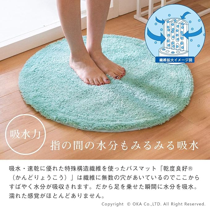 オカ(OKA) 乾度良好ムーン バスマット 直径70cm ミントグリーン(円形 抗菌 足ふきマット)