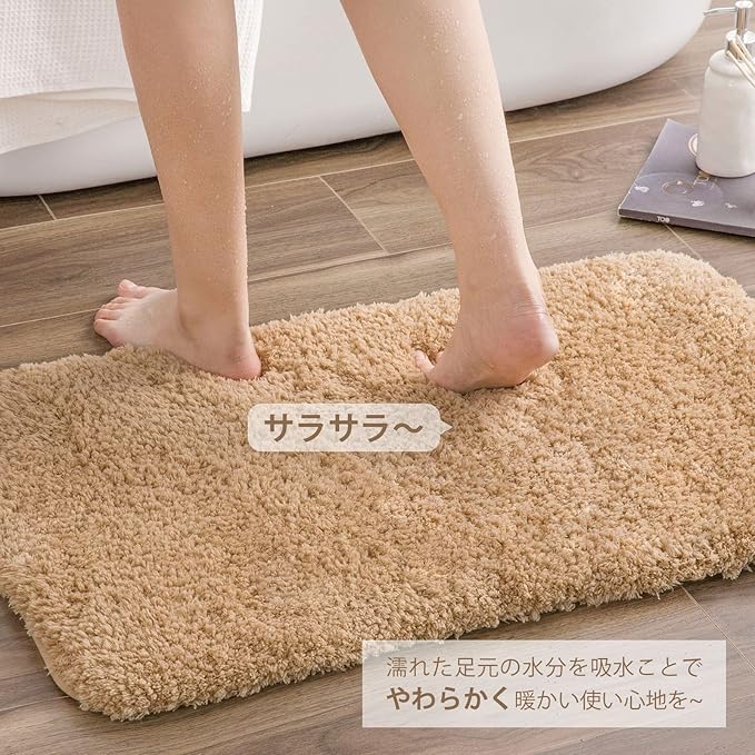 【毛長38mm! 柔かくて暖かい、寒い季節に最適!】38mmの毛長は普通の市販バスマットより2倍長く!ふんわり安心できる素材を使い、毛足は肌触りのよい極細マイクロファイバー繊維で作られたタオル地、柔かくて暖かい、秋や冬に最適!毛足が長いので、水分をすぐに吸い取り、柔らかくて暖かい触感で足に優しい。抗菌防臭素材を厳選し、浴室、台所、トイレ、玄関などの多様なシーンに応じて、8色と5タイプのサイズが用意しております。ご家族の安心するため高品質な匂いなく、特殊色染める技術処理して色落ちにくい、長く使っても新品感ままです。
