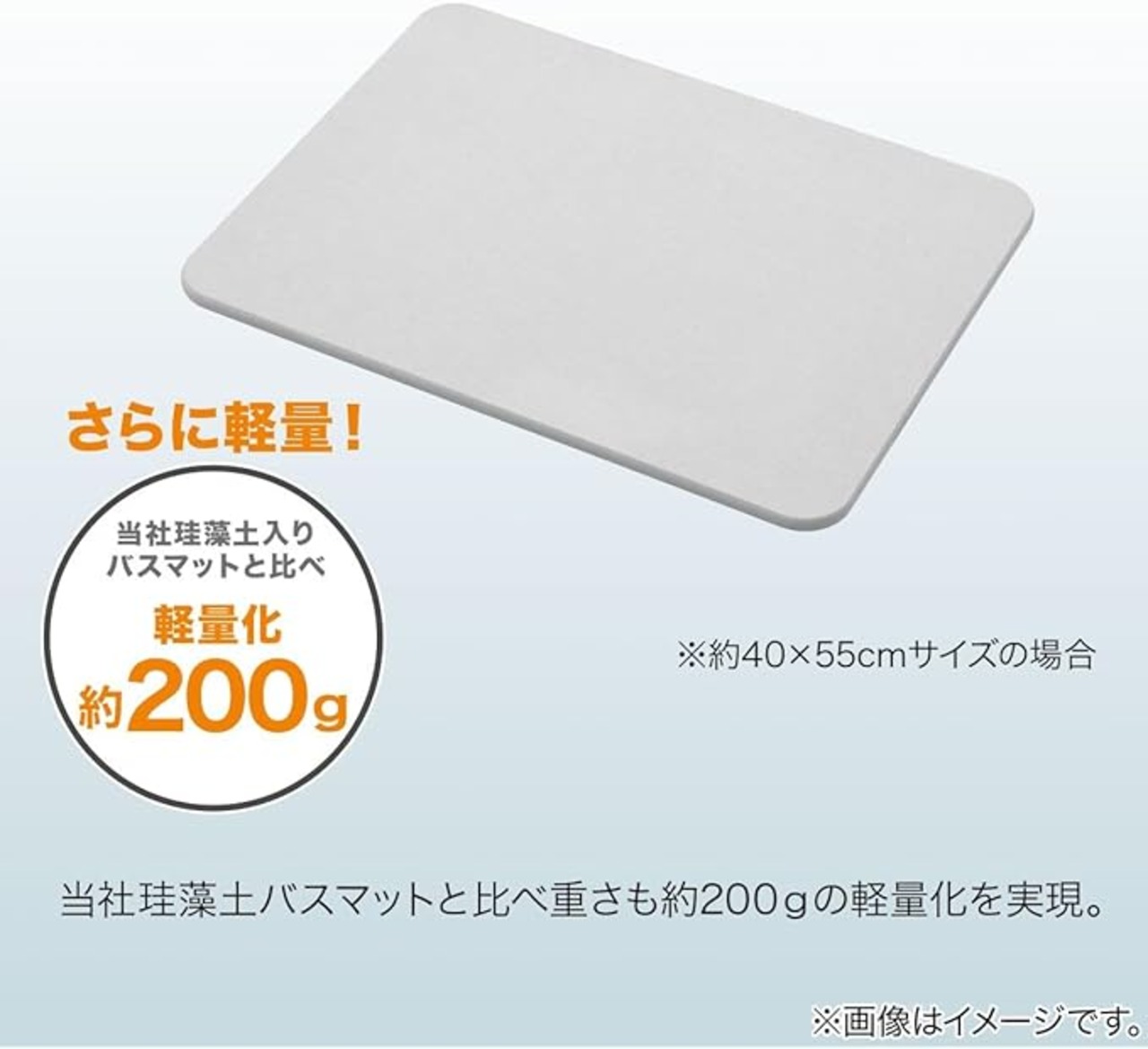 当社珪藻土バスマットと比べ重さも約200gの軽量化を実現。