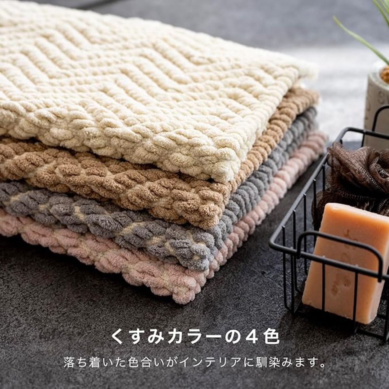 マイクロファイバーを使用した踏み心地のいいバスマット。ひとつひとつ丁寧に手織りで作っており、しっかりとした踏み心地のボリュームのある凹凸が特徴です。