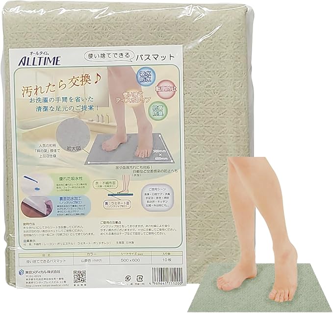 東京メディカル バスマット 使い捨て 不織布 足ふきマット 高吸水力 50cm 60cm 10枚入 1袋