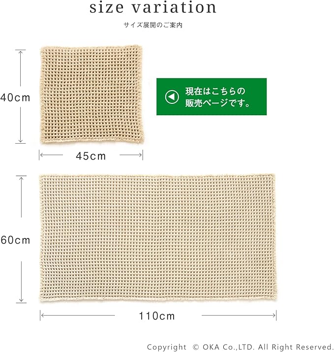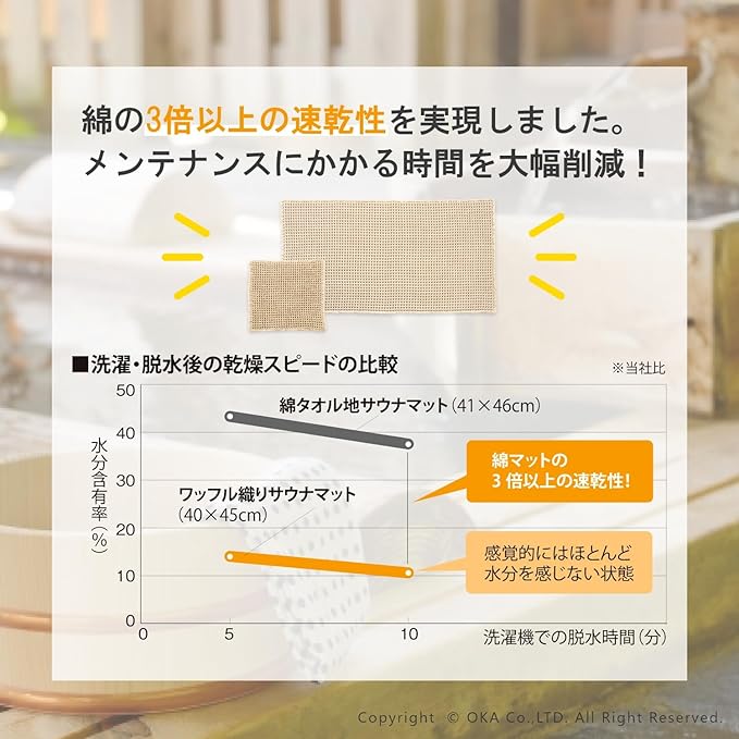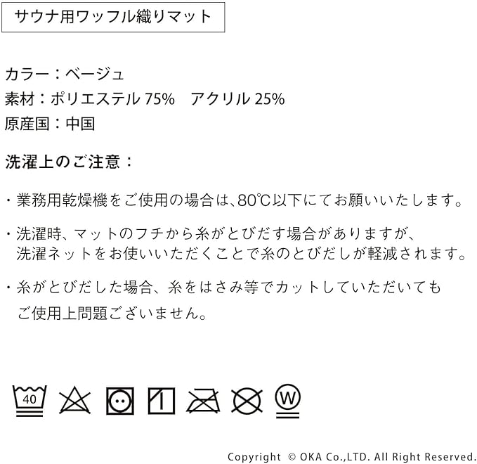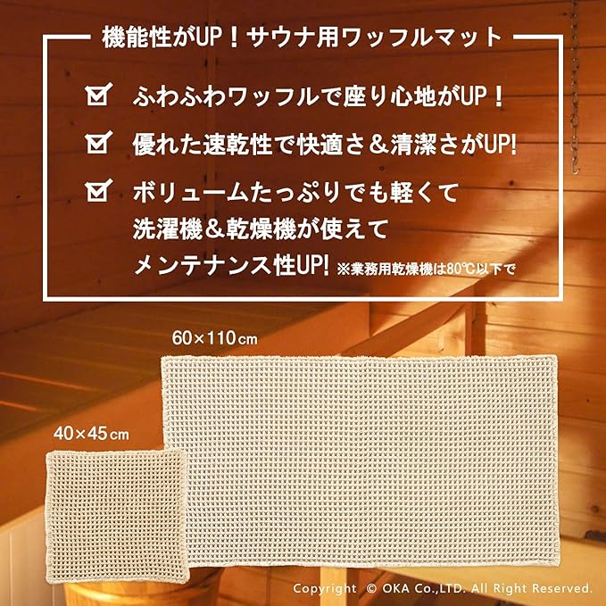 オカ(OKA) サウナ用 ワッフル織りマット 約40cm 45cm ベージュ (パーソナルサウナ 洗える サウナマット)