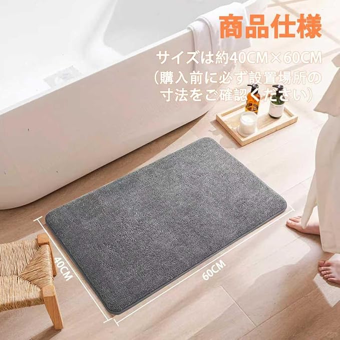 【商品仕様&材質】サイズは約60cm 40cm (購入前に必ず設置場所の寸法をご確認ください)表面素材はポリエステル100%、裏面はTPR製滑り止め加工です