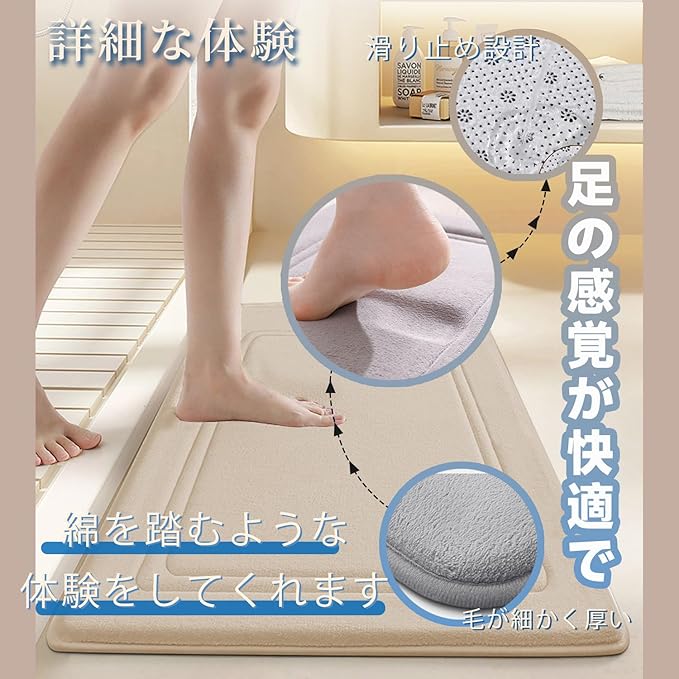 高品質のあしふきマット:高密度超微細繊維を用いて作られ、肌にやさしい快適さ、快適な綿の感触をもたらす。精巧に作られた縁取りが耐久性を確保し、美観と実用性を兼ね備え、バスルームのスタイルを高めます。