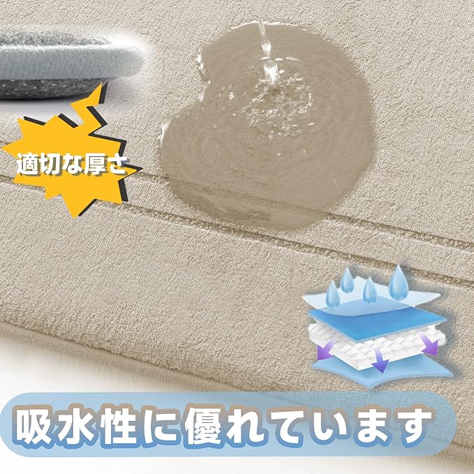 多用途に使える人気マット:トイレ、浴槽、浴室ドア、洗面台、脱衣所などで「お風呂マット」「洗面所マット」「足ふきマット」として使え。日常使いのほか、品質重視の賃貸住宅やホテルにも最適で、人気のトイレマットランキングにも入る人気商品です。