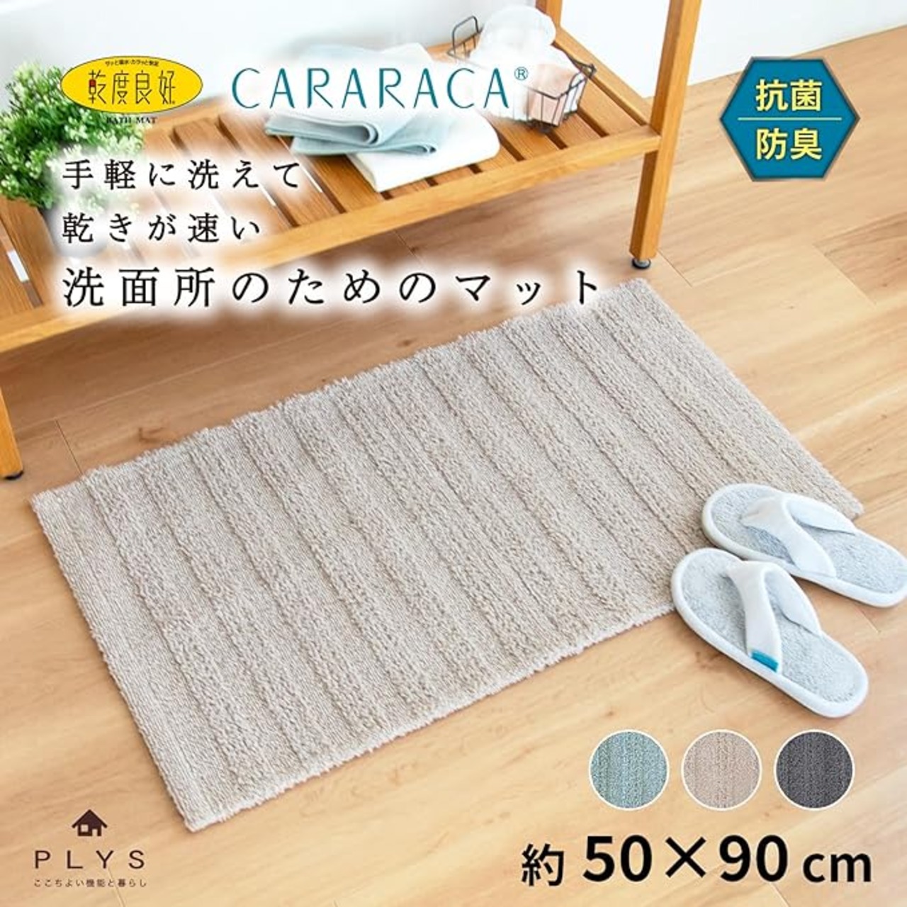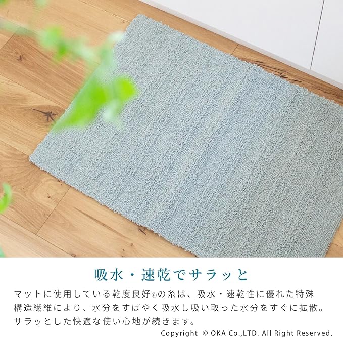 オカ(OKA) 乾度良好 カララカせんめんマット 約50 90cm グリーン (吸水 速乾 抗菌 防臭 乾燥機可 洗面マット プリス PLYS 足ふきマット バスマット), 80596