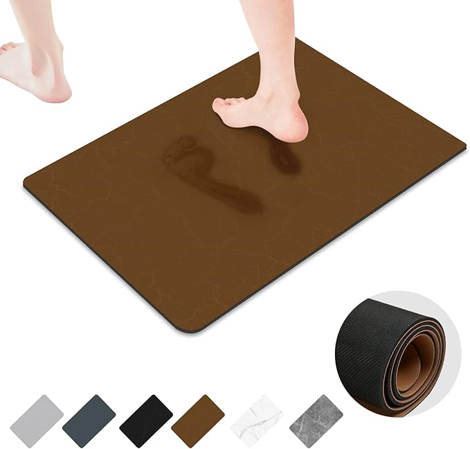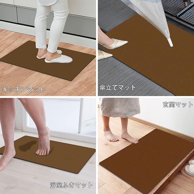 バスマット ソフト 柔らかい 速乾 瞬間吸水 薄い 軽い 割れない 抗菌 防臭 調湿 快適 手洗い&洗濯機対応 収納に便利 滑り止め付き 浴室 洗面所 (ブラウン/48*30.5cm)