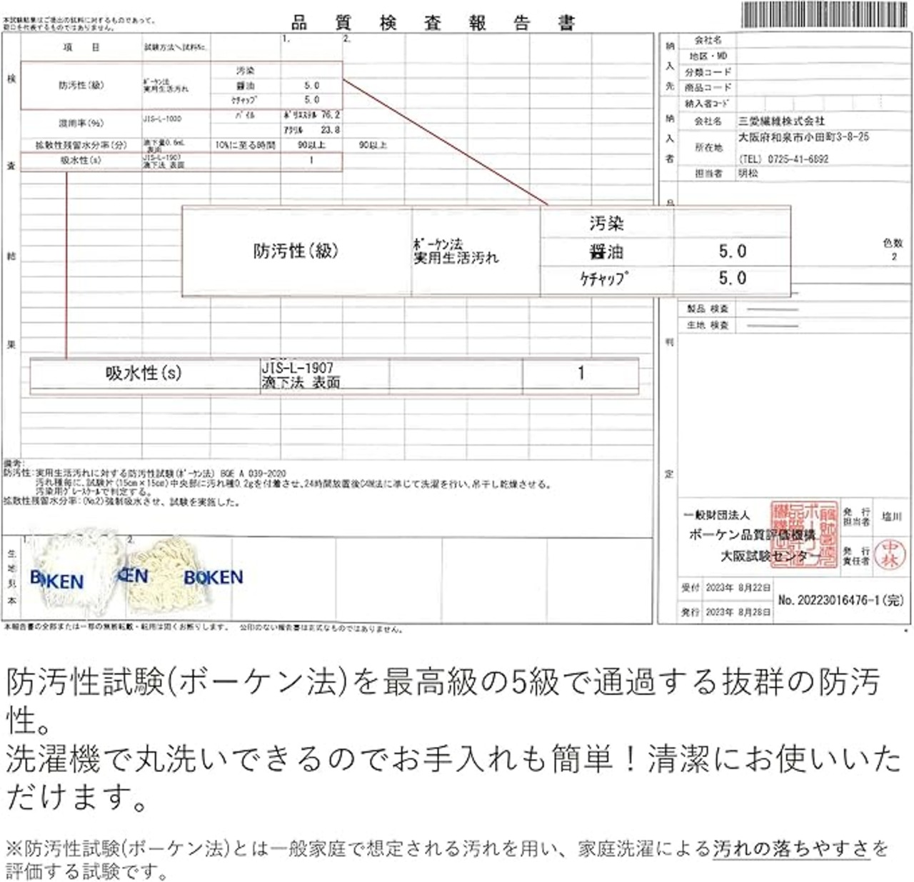 【洗濯機で簡単丸洗い】防汚性試験(ボーゲン法)を最高の5級で通過する抜群の防汚性。洗濯機で丸洗いできるのでお手入れも簡単!いつでも清潔、綺麗にお使いいただけます。※防汚加工とは・・・繊維に特殊な加工を施し、表面に親水性(水になじみやすい状態)をもたせることによって、汚れと繊維の間に水が入り込み汚れを落としやすくする加工