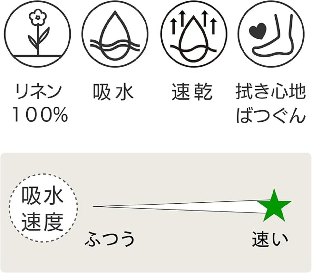 【優れた吸水性と速乾性】リネンは綿と比較して吸水性は約4倍、速乾性は約2倍といわれ、お風呂場などの水回りには最適の素材です。