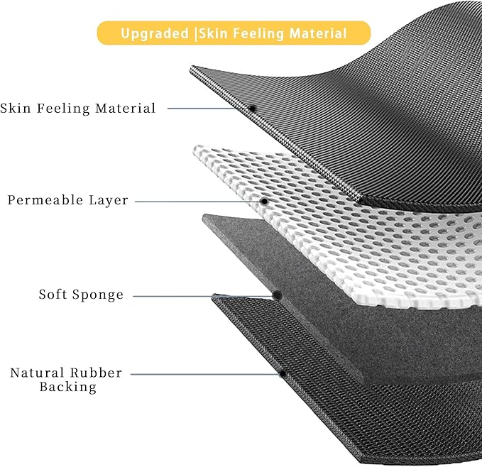 【商品仕様】・サイズ:約60cm*40cm*0.4cm ・四層構造:1.超極細繊維透水層(毛髪がつかない)、2.珪藻土吸水層(吸水性抜群)、3.再生スポンジ(足触り快適)、4.滑り止めシリコン層(ケガ防止)。柔らかくてスポンジを踏むような感覚で、冷たさの心配もありません。