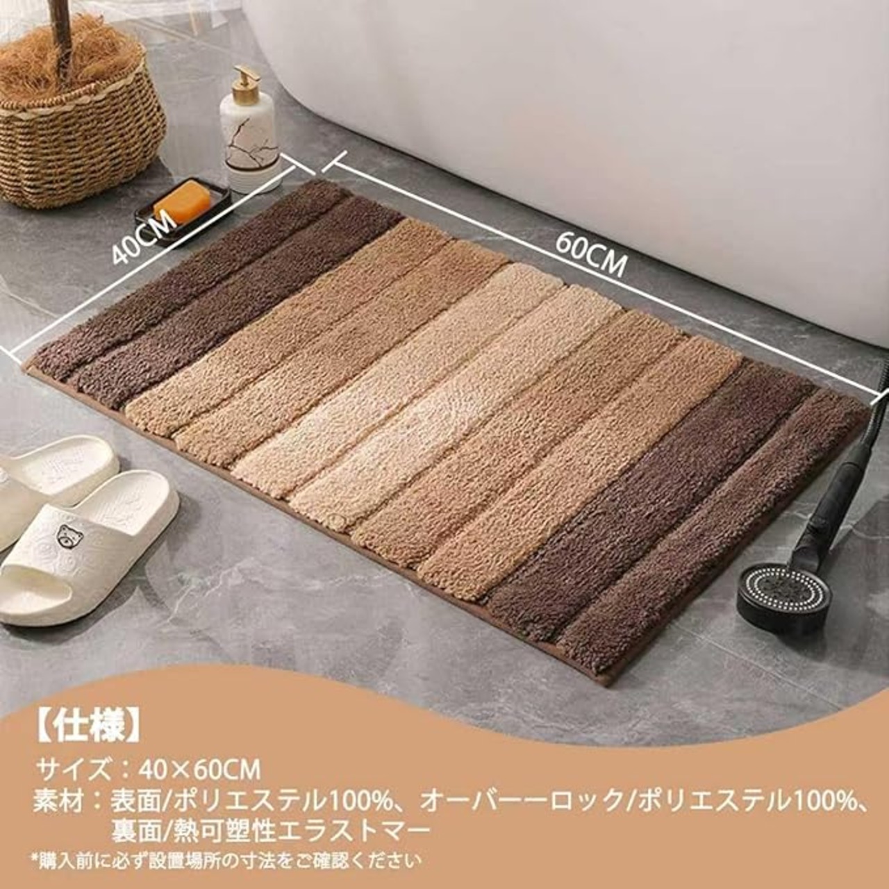 Makuru バスマット 洗える 速乾 おしゃれ 大判 人気 お風呂マット あしふきマット 足拭 滑り止め 吸水 マイクロファイバー キッチン 玄関 ドア 洗面所 浴室用 (プラウン, 60x40cm)