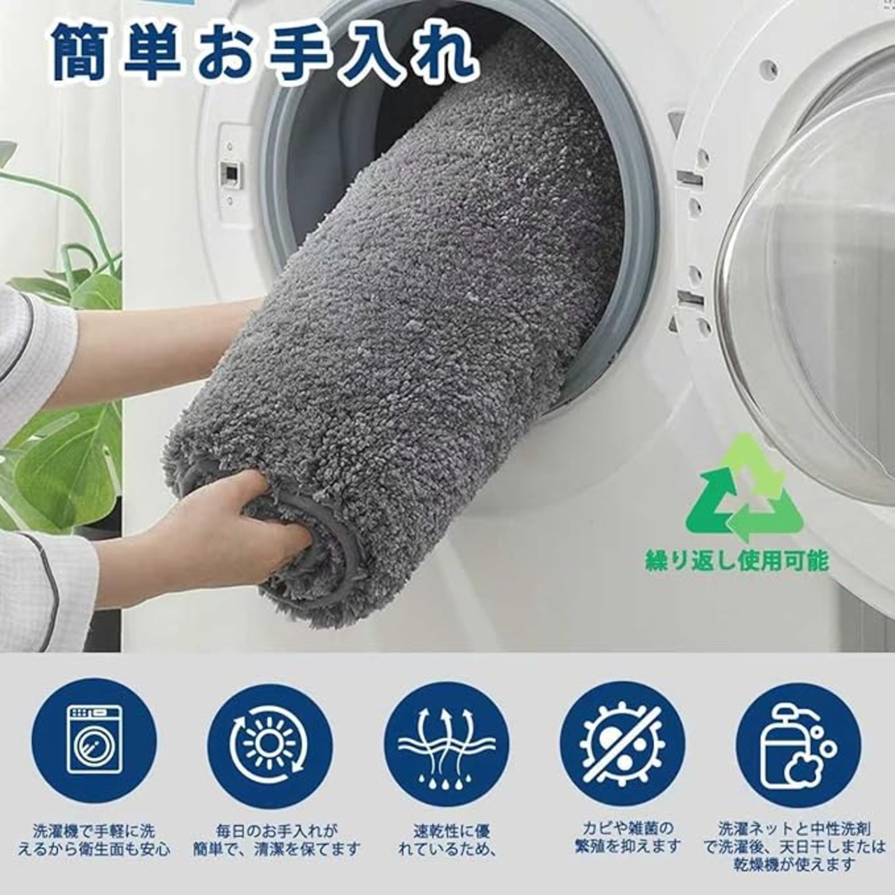 【吸水・速乾性能】ふわふわとした極細マイクロファイバーが瞬時に水分をキャッチ。軽く2~3回踏むだけで、驚くほどの速さで水を吸い上げます。すぐ乾くので、家族が続けて使ってもベタつかず、いつもふんわり温かみのある感触が持続。